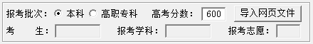 使用時(shí)只需選擇‘報(bào)考批次’、輸入分?jǐn)?shù)、導(dǎo)入‘網(wǎng)頁文件(考生網(wǎng)上提交志愿后導(dǎo)出的.html文件)’即可。